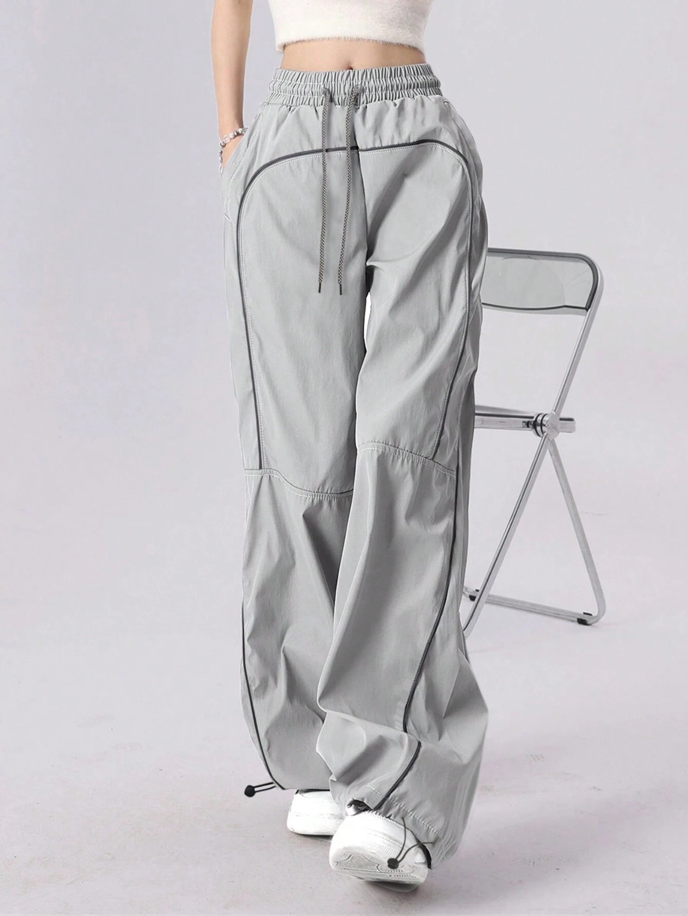Women's Drawstring Waist Pocket Patchwork Casual Sports Pants