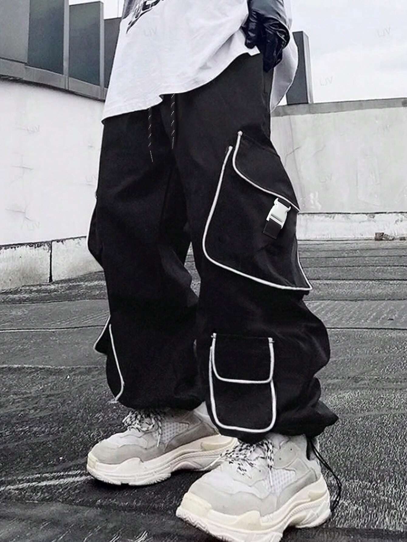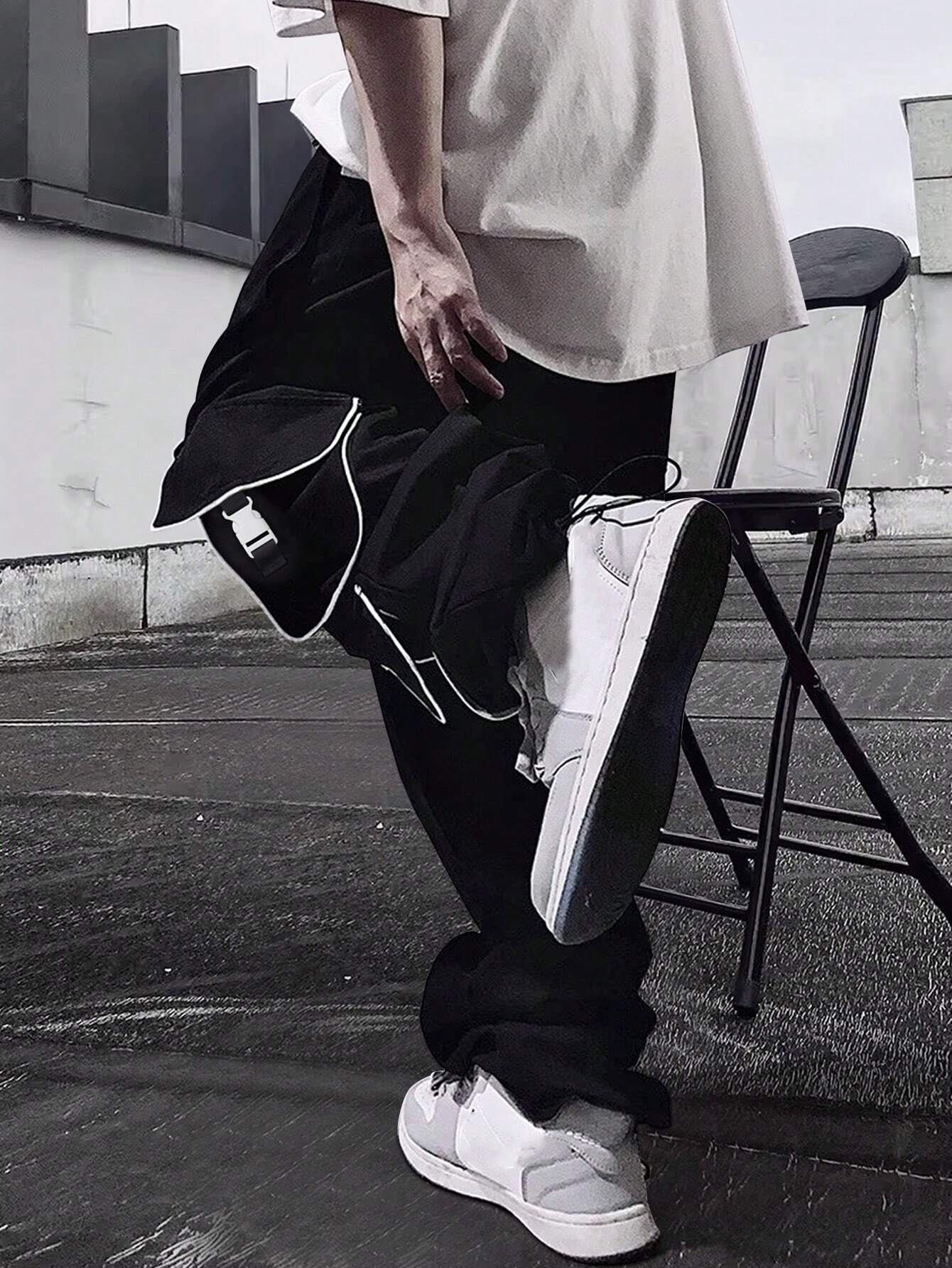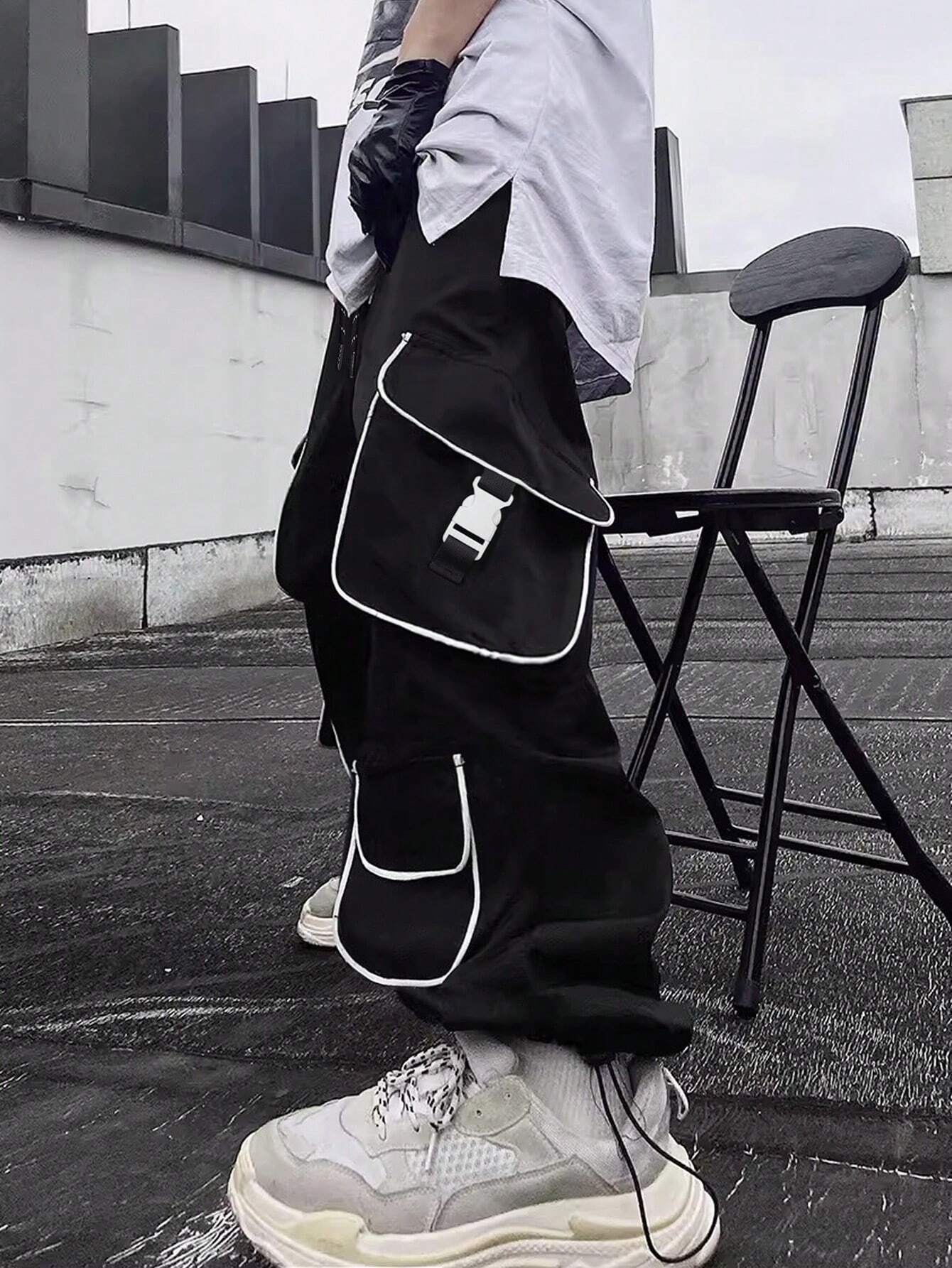 Men Stylish Drawstring Casual Flap Pocket Cargo Pants