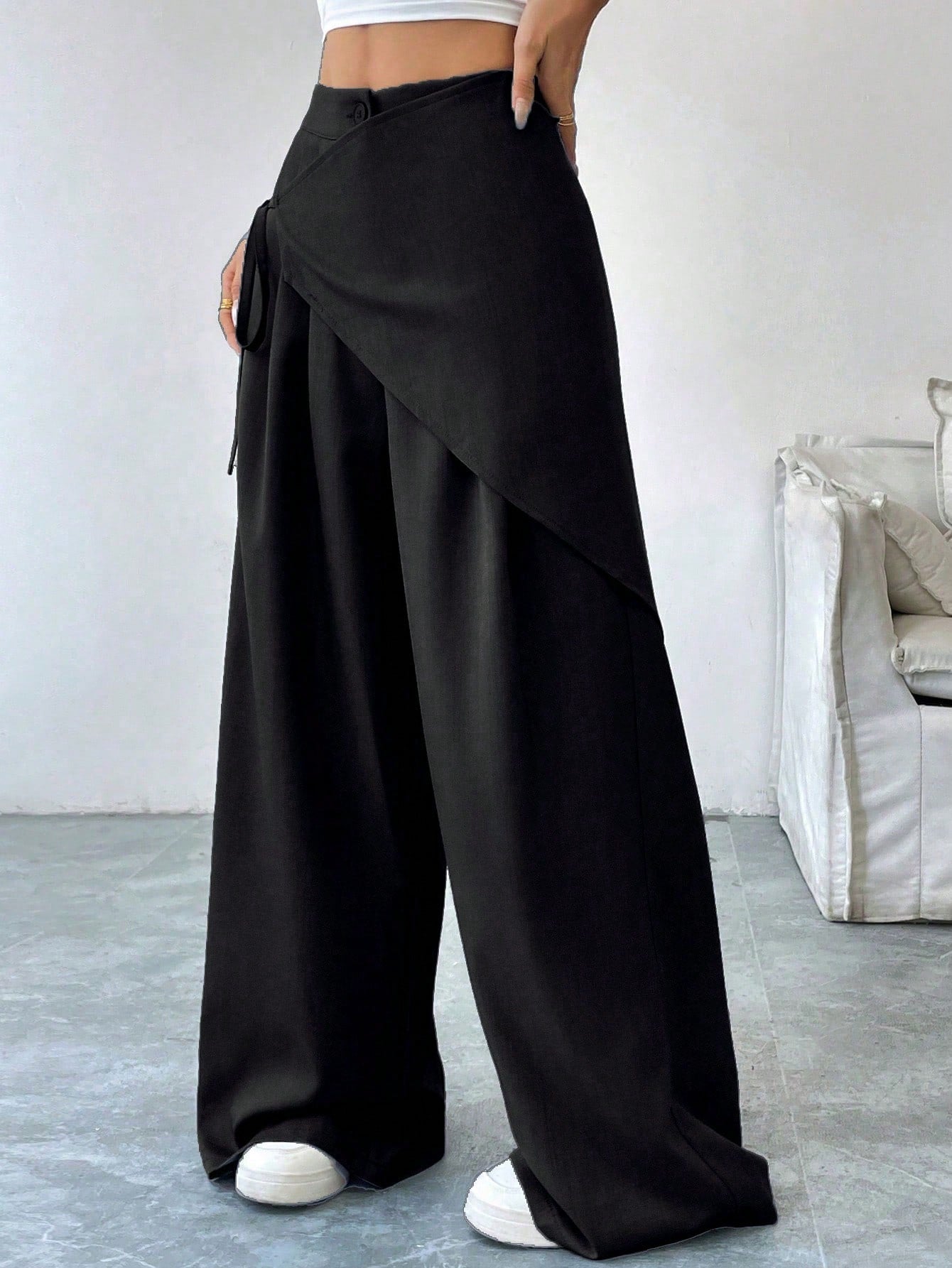 Women's Solid Color Cross Wrap Tie Loose Casual Pants