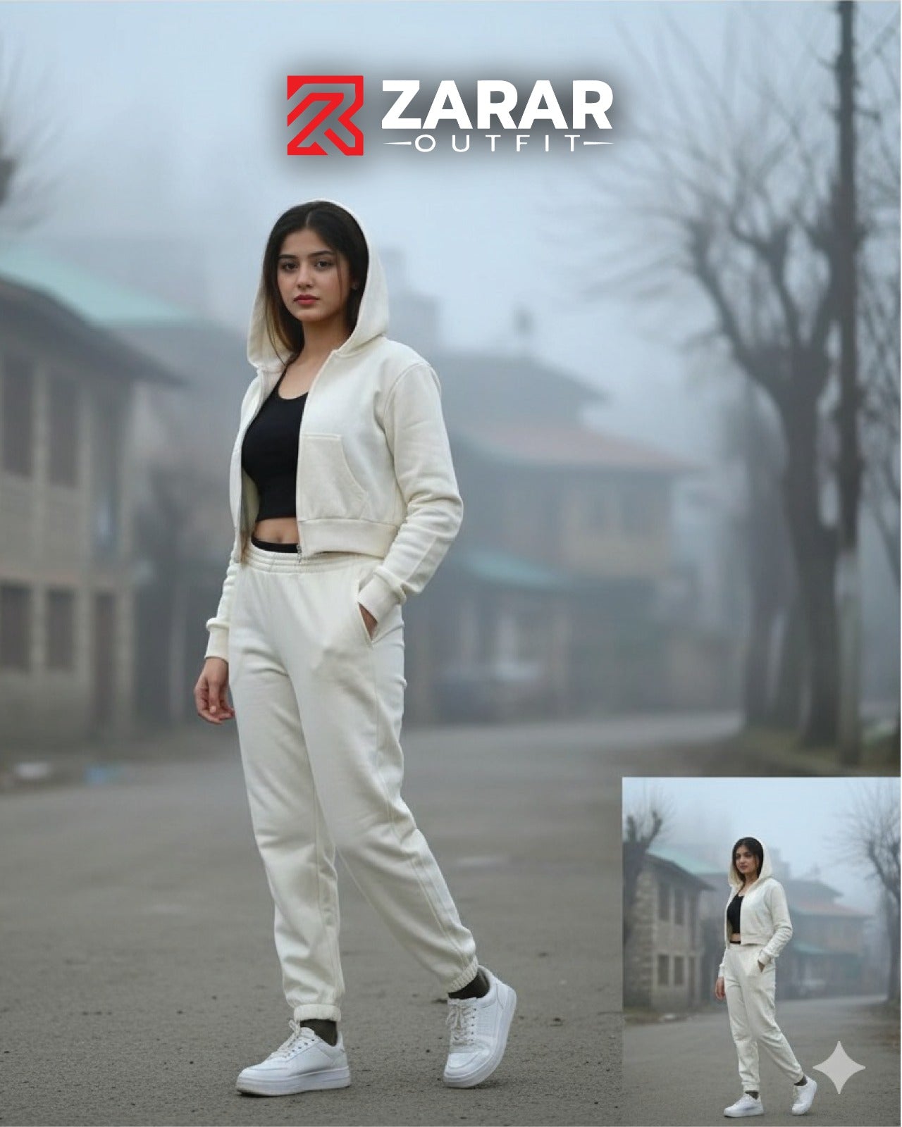 Crop Zipper Basic 3pc Tracksuit - Zarar Outfit