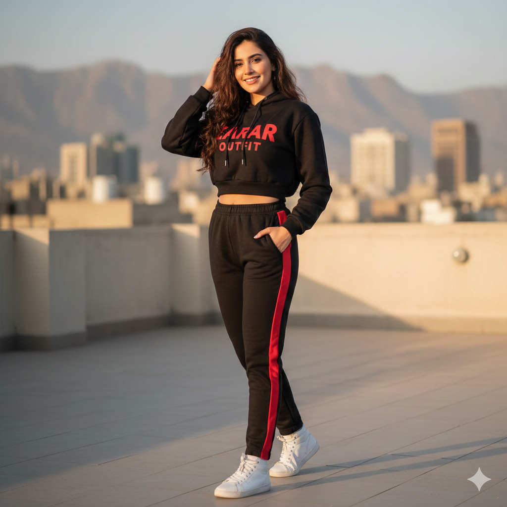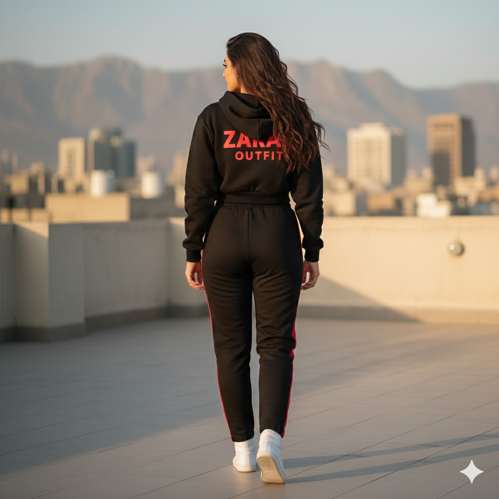 # ZararOutfit Tracksuit Experience effortless comfort with our premium crop hoodie and trouser set. Crafted from high-quality fabric, this tracksuit combines contemporary styling with durability for everyday wear or casual outings. The cropped hoodie offers a modern silhouette, while the matching trousers provide a relaxed fit. Perfect for those seeking versatile, well-made basics that transition seamlessly from home to street.